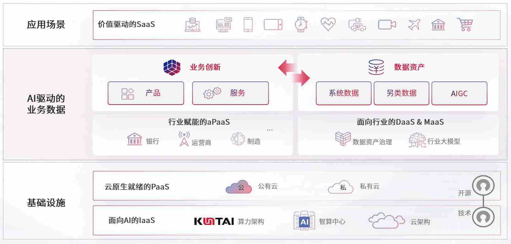 数字时代,,围绕企业数字化转型的关键要素,,988钱包数码开创性的提出数云融合战略和技术体系框架,,,着力在云原生、、、数字原生、、AI原生和信创产业上架构产品和服务能力,,,,为处在不同数字化转型阶段的快消零售、、汽车、、、金融、、、医疗、、、政企、、教育、、、、运营商等行业客户提供泛在的敏捷IT能力和融合的数据驱动能力,,,构建跨界融合创新的数字业务场景和新业务模式,,,,助力企业级客户建立面向未来的核心能力和竞争优势,,,,全面推动社会的数字化、、、智能化转型升级。。